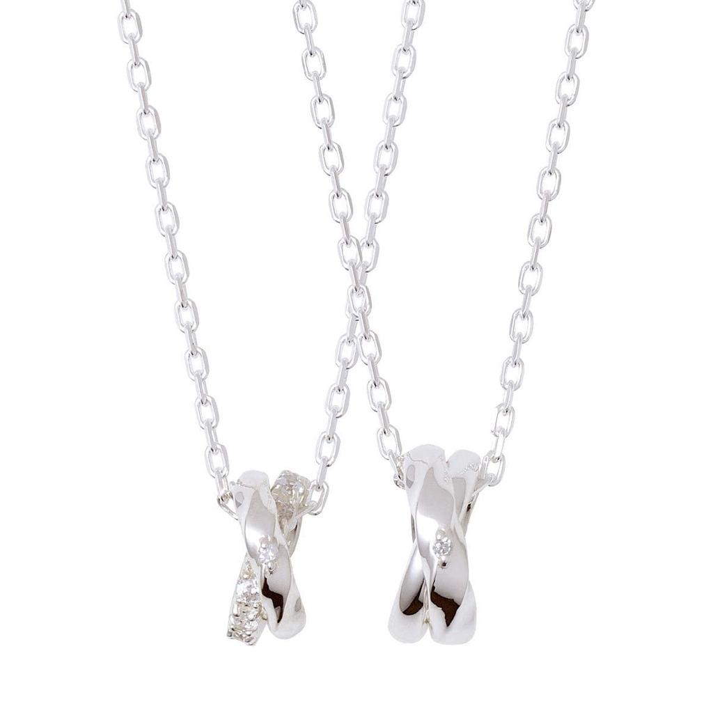 The Kiss Silver Pair Necklace with Simple for Men and Gift for Anniversaries and Gift Wrapping Box 40cm and 50cm SPD7034DM-7035DM Diamonds, Design,