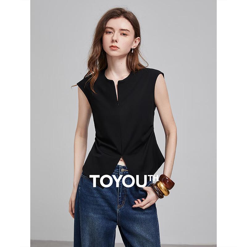 Chuyu Women's Wide Shoulder Front Slit Short Sleeve T-Shirt