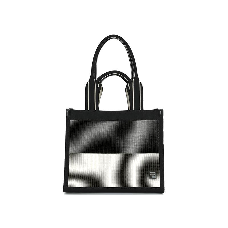 FILA Golf Series Classic Striped Fabric Tote Bag With Hidden Zipper Pocket Women tote bags Black A13W545163FBK
