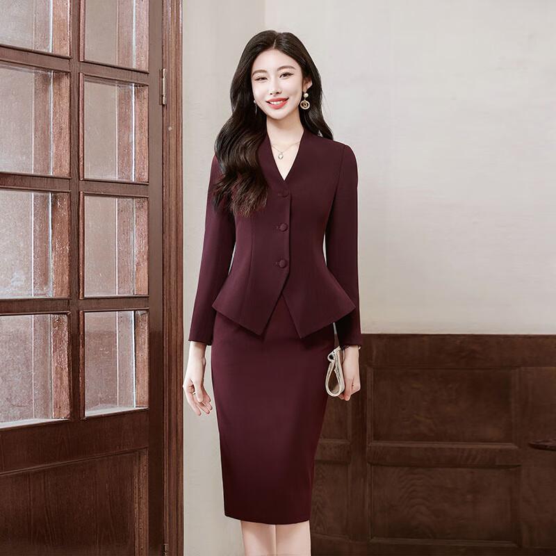 Taluoman Ankela Red Professional Women's Skirt Suit