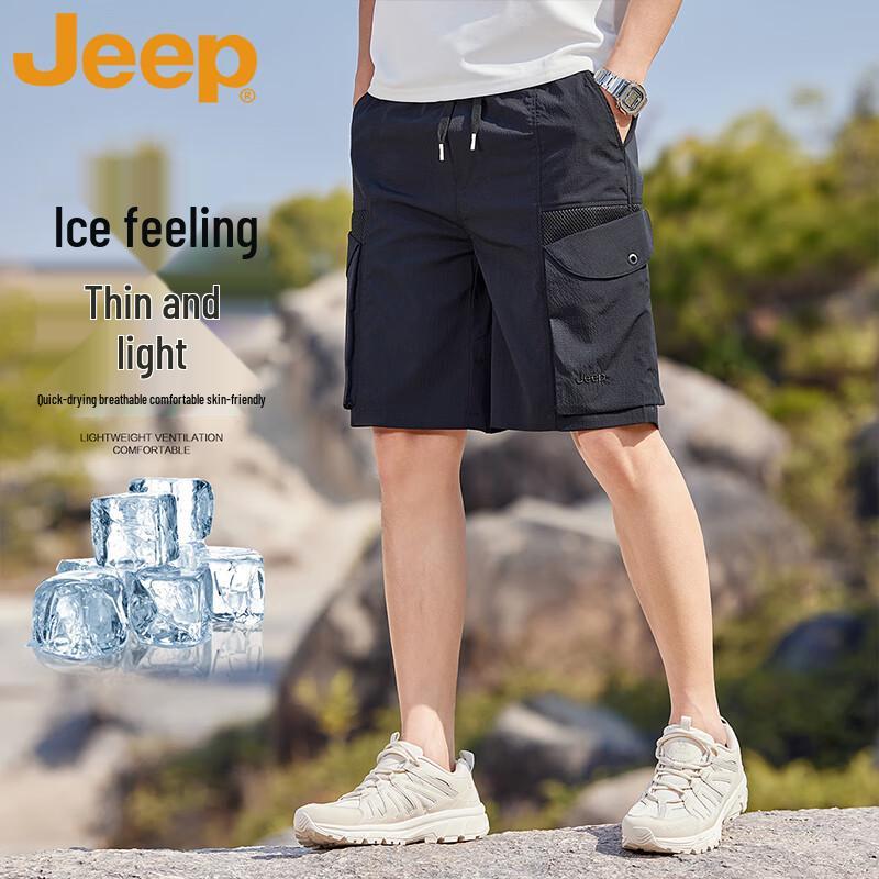 Experience ultimate comfort and performance with JEEP Men's Ice-Feel Lightweight Quick-Dry Outdoor Sports Shorts. Crafted from a blend of polyester and spandex, these breathable five-point shorts are perfect for summer casual wear, outdoor activities, or sports. Their quick-drying fabric and ice-feel sensation keep you cool and comfortable all day long.