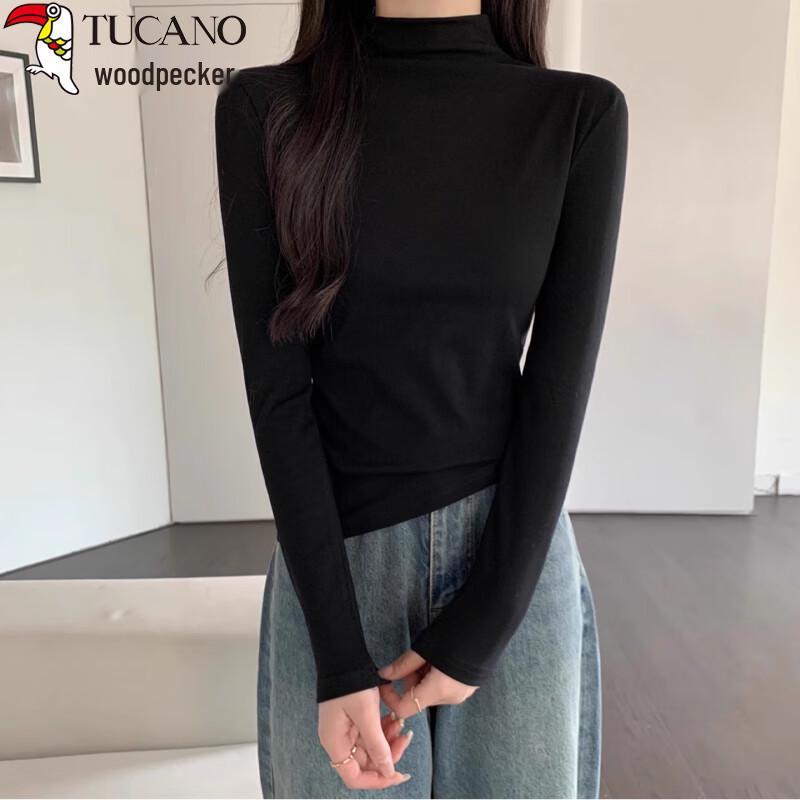 Woodpecker Women's Ribbed Mock Neck Slim Fit Cotton Long Sleeve Base Layer Top