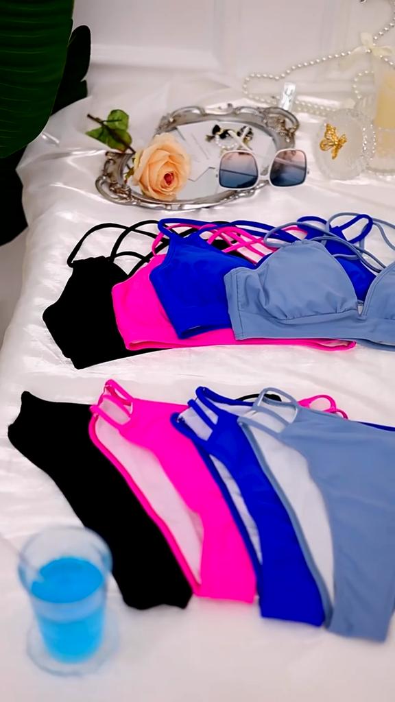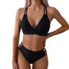 Women’s Solid Color Tankini Bathing Suit V-Neck Backless Bikini Swimsuit, Sexy Two-Piece Swimwear
