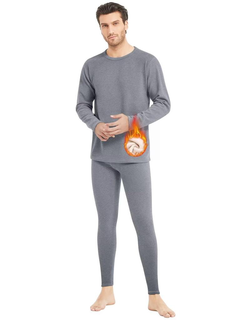 Rovidorx Men's Warm Innerwear Set, Fleece-Lined, Heattech, Long Sleeves, and Thermal Tights