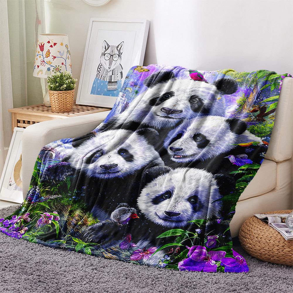Pandas Print Flannel Blanket, High quality Comfortable for All Seasons, Home Decor, Warmth and Comfort, Perfect for Christmas Gifts