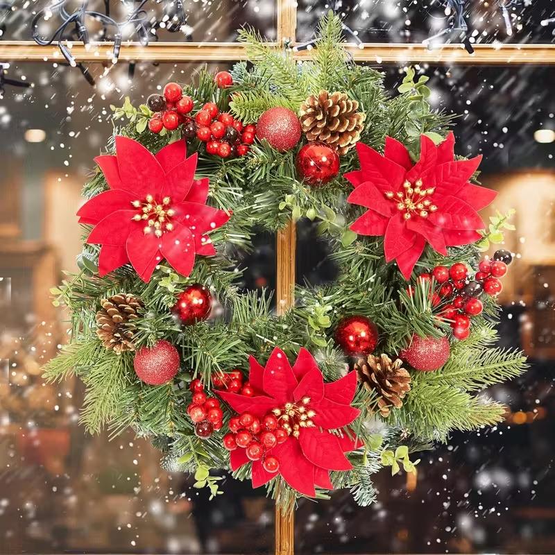 Artificial Pine Christmas Wreath Soft Green Holiday Garland Xmas Door Wall Decoration No Lights Festive Home Party Decor