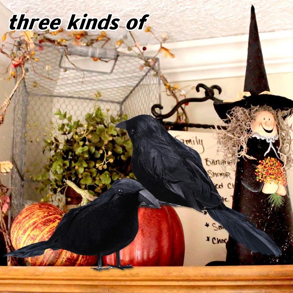 6PCS Black Feather Crow Halloween Props Mock Crow Spooky Feather Decoration Props Halloween Party Scary Animal Horror Props