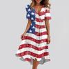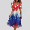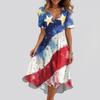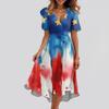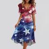 Kadın Bol Kesim Günlük V Yaka Kloş Etek Kısa Kollu Baskılı Elbise Baskılı Elbise