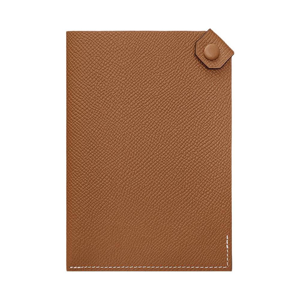Hermes Tarmac Palladium Plated Snap Leather Passport Holder Card Case Women Card Holder Gold Brown H057946CK37