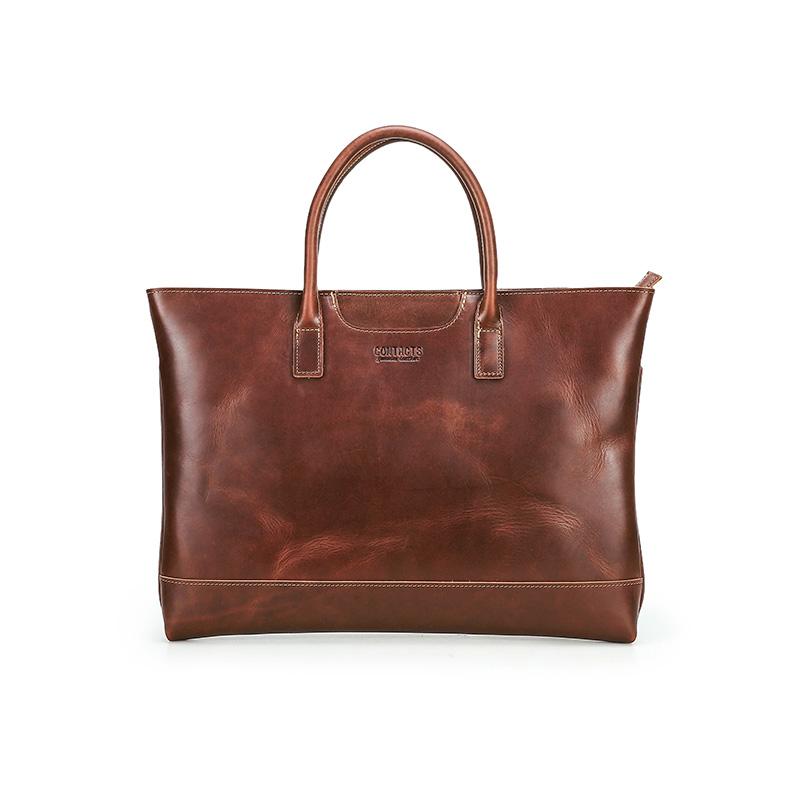 CONTACT'S Genuine Leather Handbag Men Retro Quality Large Capacity Briefcase Male Metal Zipper Daily Office Travel Laptop Bag