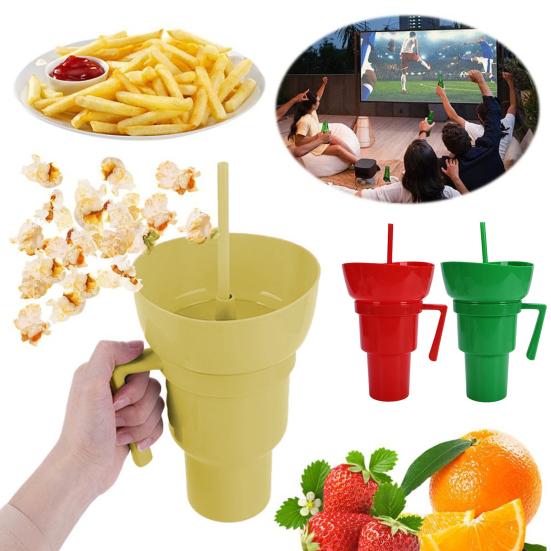 Atıştırmalık ve İçecek Kupası Yeniden Kullanılabilir Patlamış Mısır Tutucu Pipetli Sızdırmaz 900ml Stadyum Kupası Filmler Seyahat İçin
