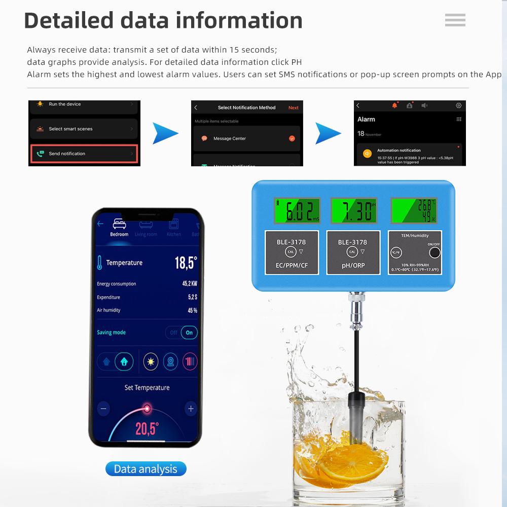 Blue-tooth 5.2 Multifunctional 7 In 1 Water Quality Tester EC/TDS/CF/pH/ORP/Humidity/TEMP Meter BLE-3178 APP Remote Monitoring