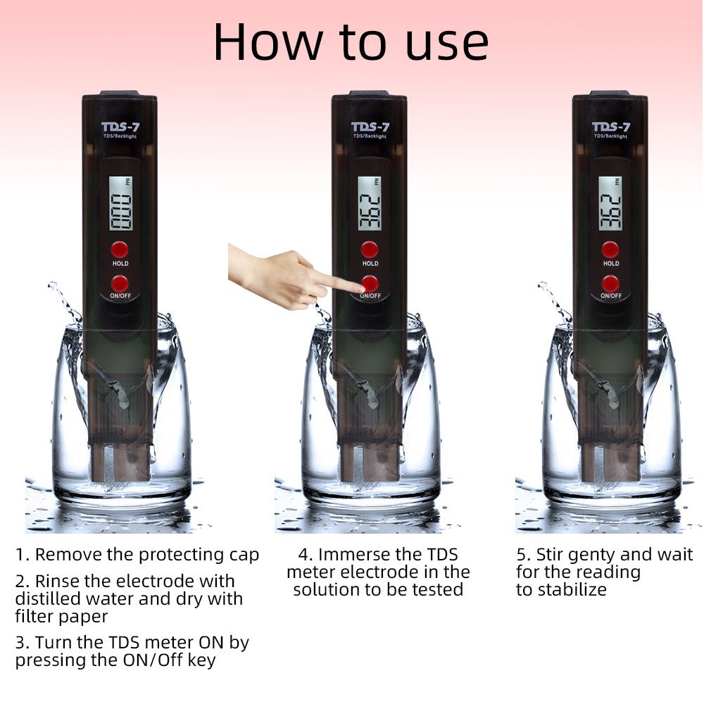 TDS Meter Portable Digital TDS Pen Meter Water Quality Purity Tester High Precision 0-9990 ppm Drinking Aquarium Water Monitor