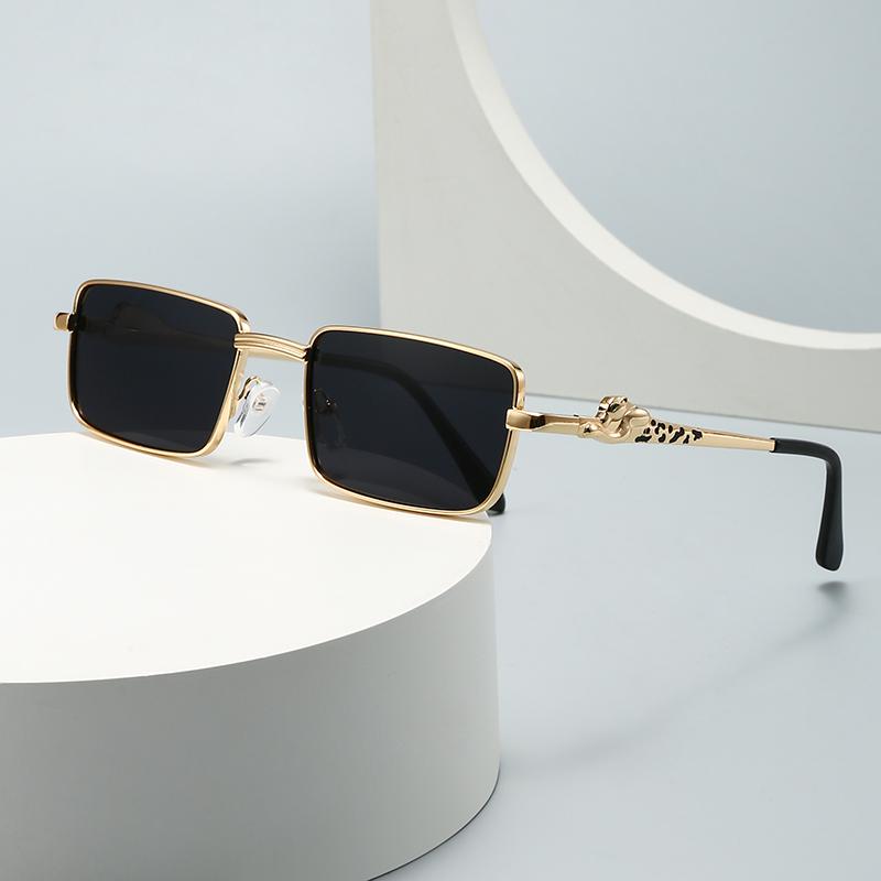 Popular Cross-Border Sunglasses for Men European and American Street Style Instagram Influencer Model Rectangular Metal Sunglasses for Women 1421