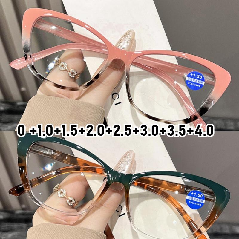 Unisex Fashion New Cat Eye Reading Glasses Spliced Color Frame Transparent Lens HD Fashion Presbyopia Glasses 0 To 4.0