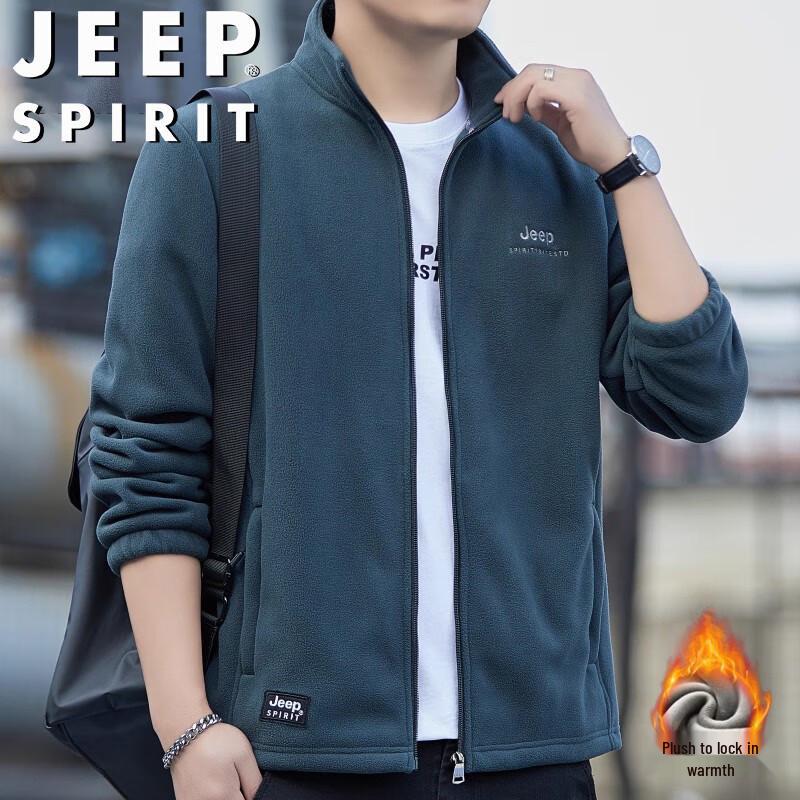 JEEP SPIRIT Men's Stand-Collar Fleece Cardigan Jacket