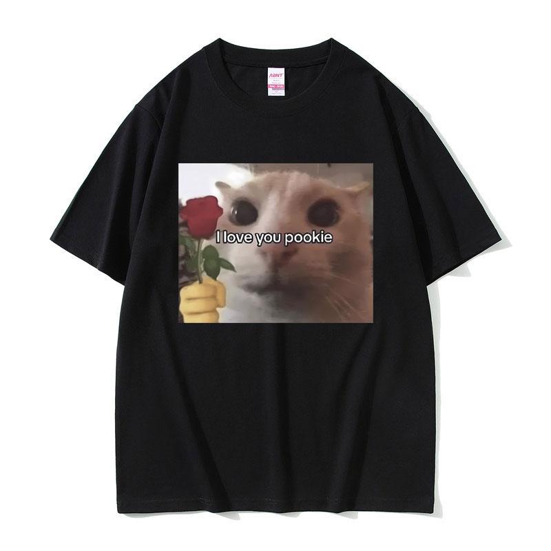 Funny I Love You Pookie Cat Graphic Print T Shirts Men Cute Kwaii Joke Humor Meme Tshirts Male Casual Oversized Tshirt