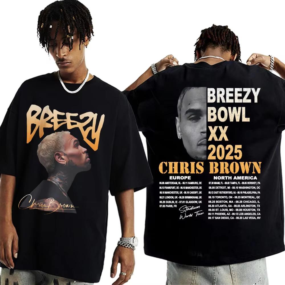 Chris Brown Tour Breezy Bowl XX 2026 Album Tshirts Men Women Vintage Gothic High Street Tshirt Comfort Loose Oversized T Shirt