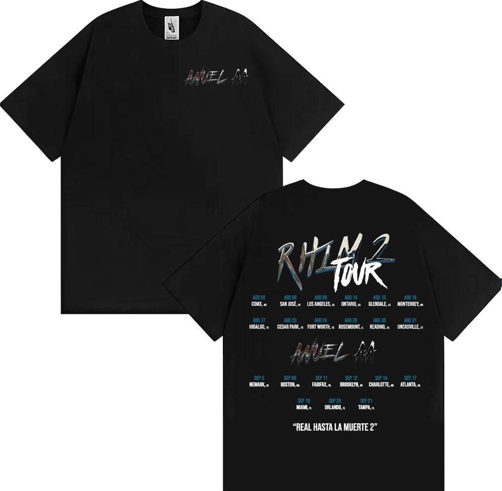 Anuel AA Rhlm 2 Real Hasta La Muerte Album Print T Shirt Mens Women Hip Hop 90s Vintage Cotton Short Sleeve Tshirts Streetwear