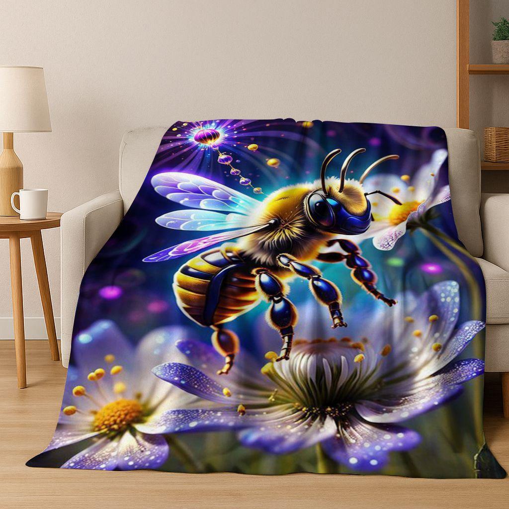 Cute Cartoon Bee HoneyBee Insect Art Flannel Blanket,Cozy Soft Throw Blanket for Home Bedroom Bed Sofa Picnic Cover Gift Kids