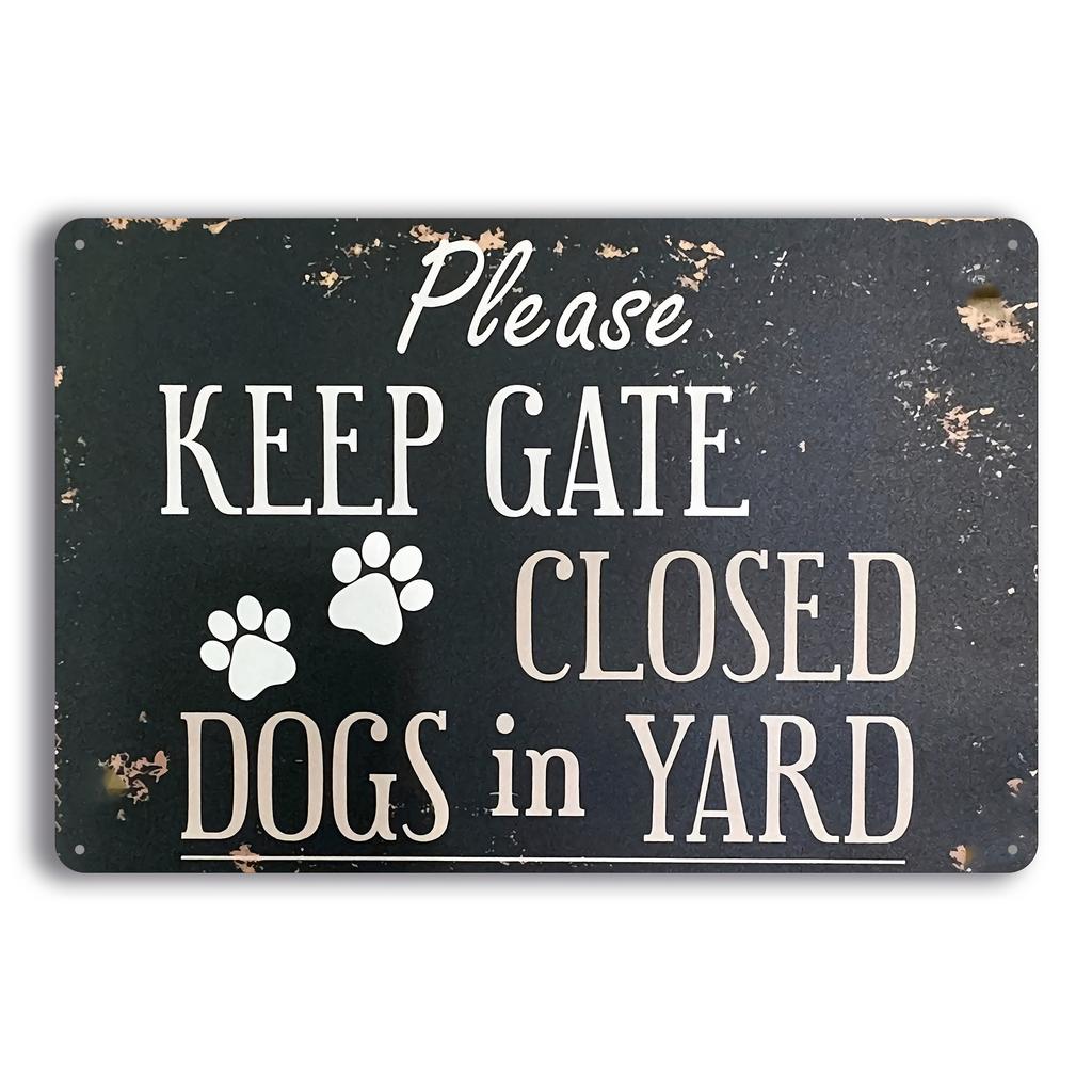 Metal Sign Rustic Please Keep Gate Closed Dogs in Yard Metal Sign Weatherproof Iron Wall Art with Paw Prints for Home