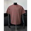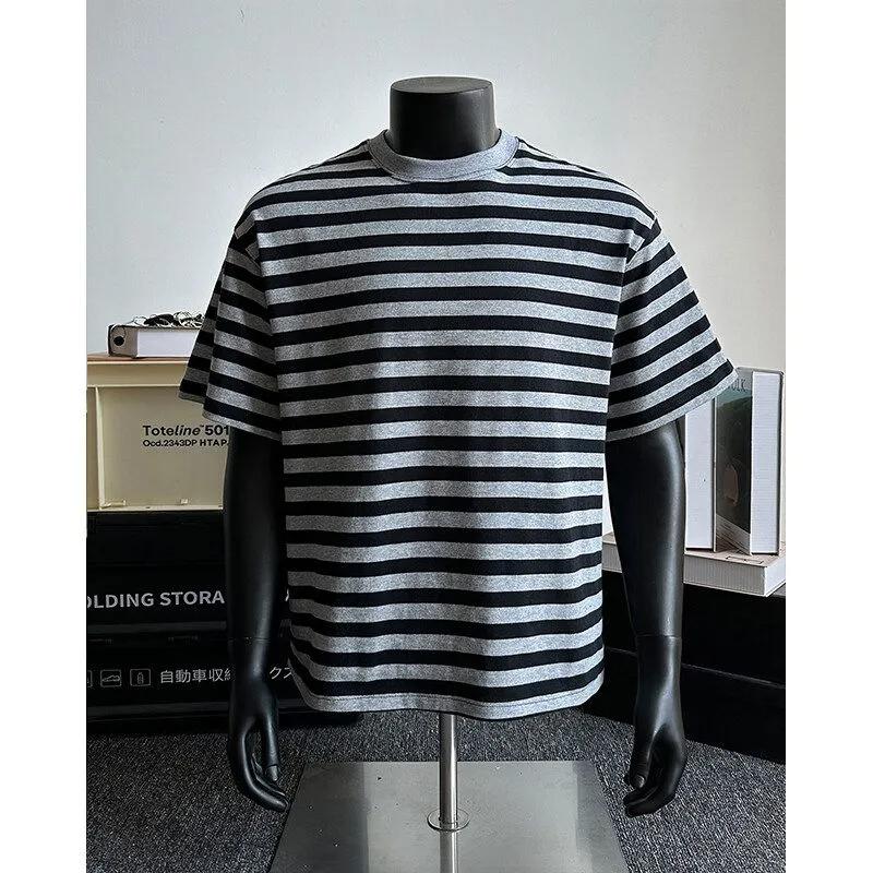Men's Black Grey Striped T-shirt Crew Neck Short Sleeve Casual Loose Fit Tee For Daily Streetwear