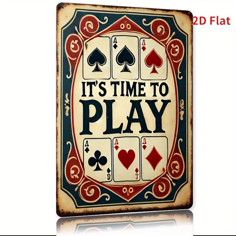 Tin Sign ITs TIME to PLAY Humorous Playing Cards Spade Design Wall Art Durable Metal Rustic Finish with Bright Colors