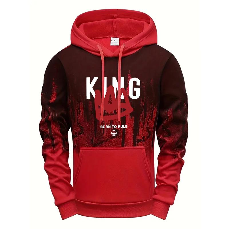 Men's King Printed Hoodies High Quality Hooded Long Sleeved Pullover Male Home Outdoor Casual Sporty Sweatshirts