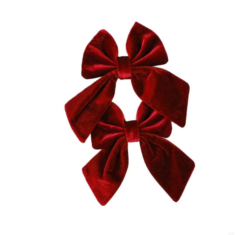 Plush Textured Christmas Bowknots Double Pack Decorative Accent For Festival Home Decors And Retail Window Displays