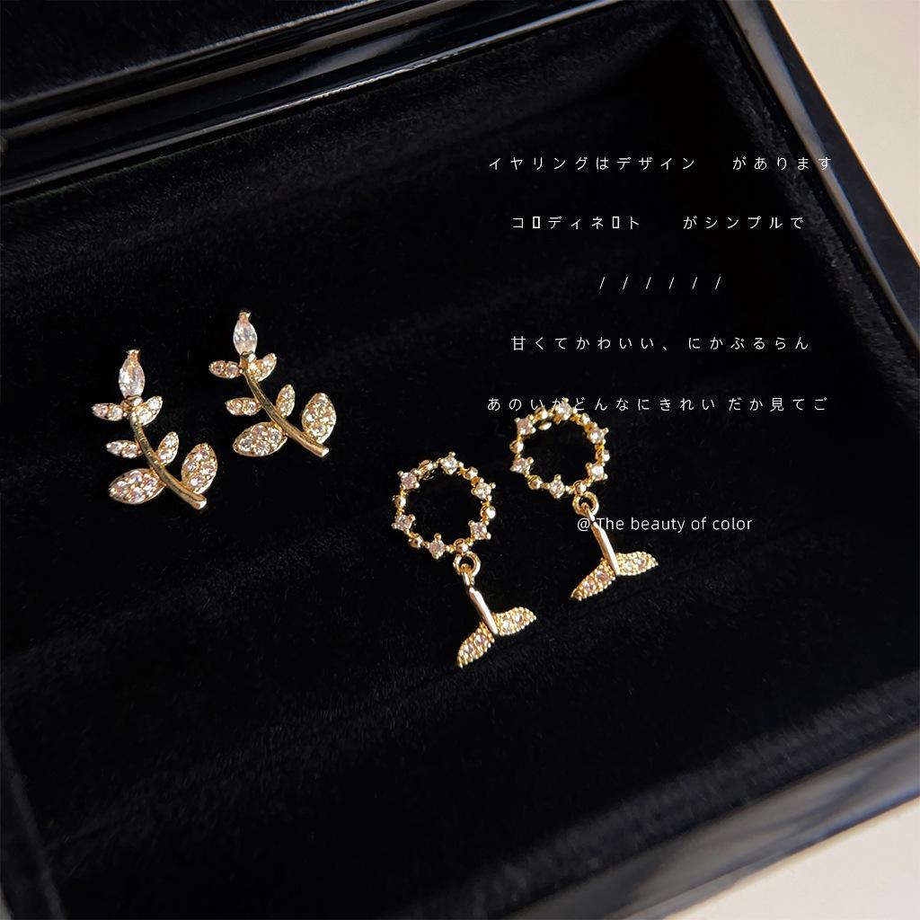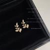 Mini version micro-inlaid zircon plated 14K versatile leaf stud earrings temperament commuter earrings jewelry
