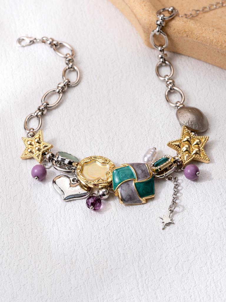 Punk Sweet Cool Wind Metal Heavy Industry Enamel Color Pentagram Multi-pendant Collarbone Chain Necklace