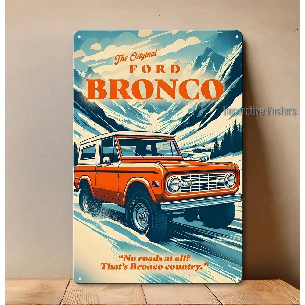 Metal Tin Sign Vintage Bronco Truck Wall Art 8x12 Rustic Garage Office Decor Man Cave