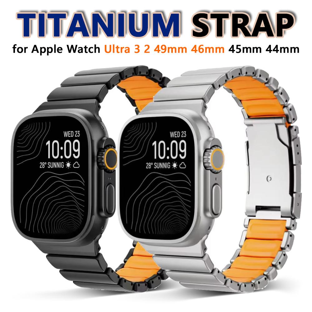 Titanium Rubber Band for Apple Watch Ultra 3 2 49mm 46mm 45mm 44mm Men No Gaps Strap for Iwatch 11 10 9 8 7 6 5 4 Se3 Bracelet