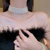 Baroque four-row imitation pearl choker necklace French retro niche high-end necklace