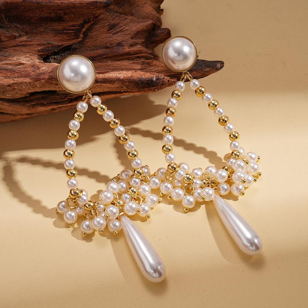 Retro style imitation pearl water drop-shaped silver needle earrings Baroque elegant niche earrings