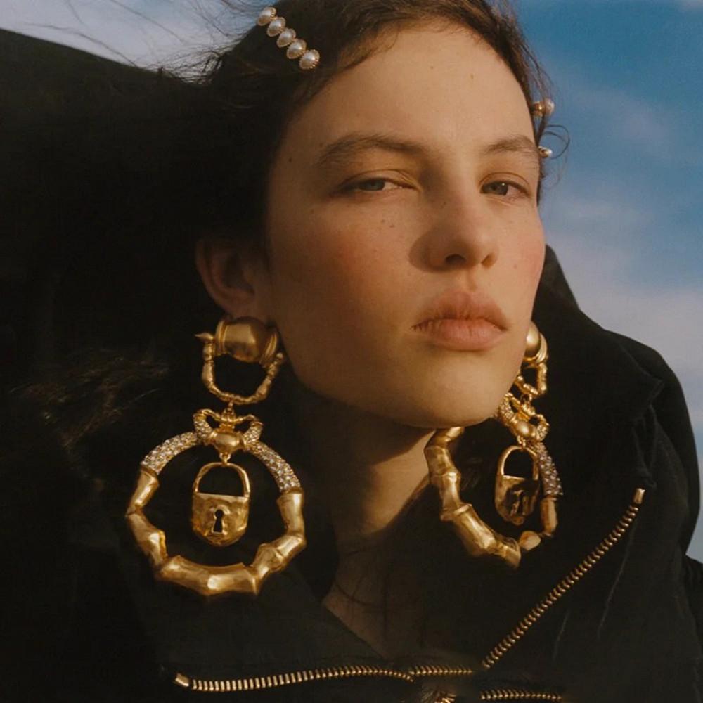Exaggerated Vingate Metal Alloy Lock Pendant Dangle Earrings for Women Jewelry Fashion Show Model Statement Earrings Accessories