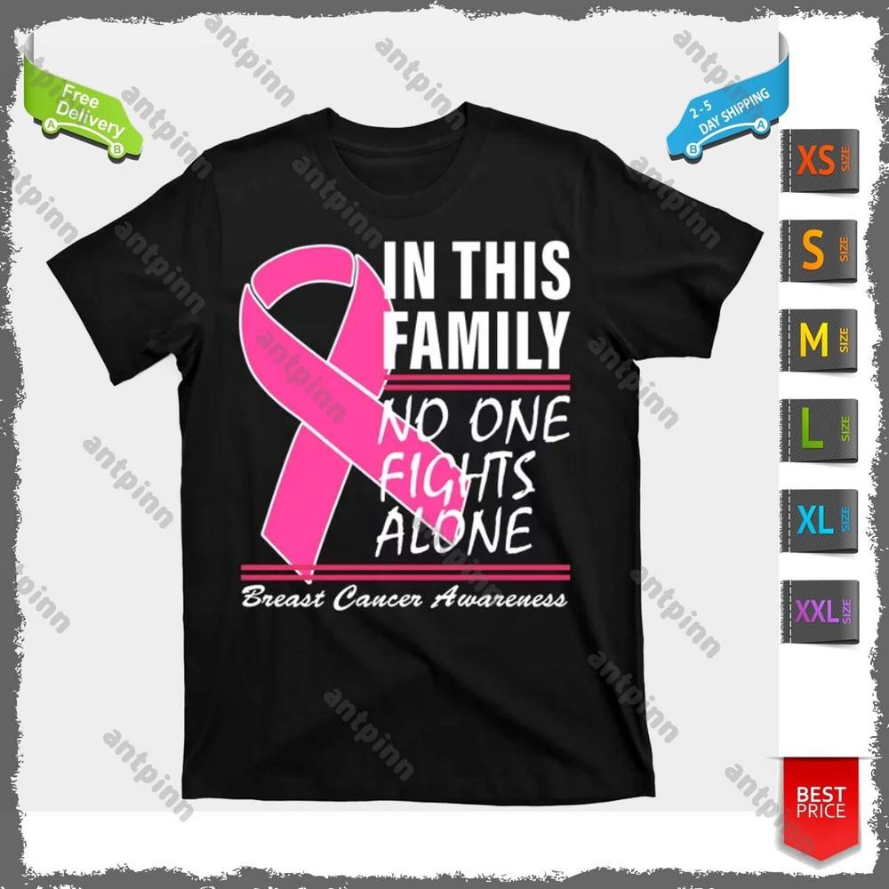 No One Fights Alone Breast Cancer Awareness Ribbon T-Shirt For Men & Women Unisex T-Shirt