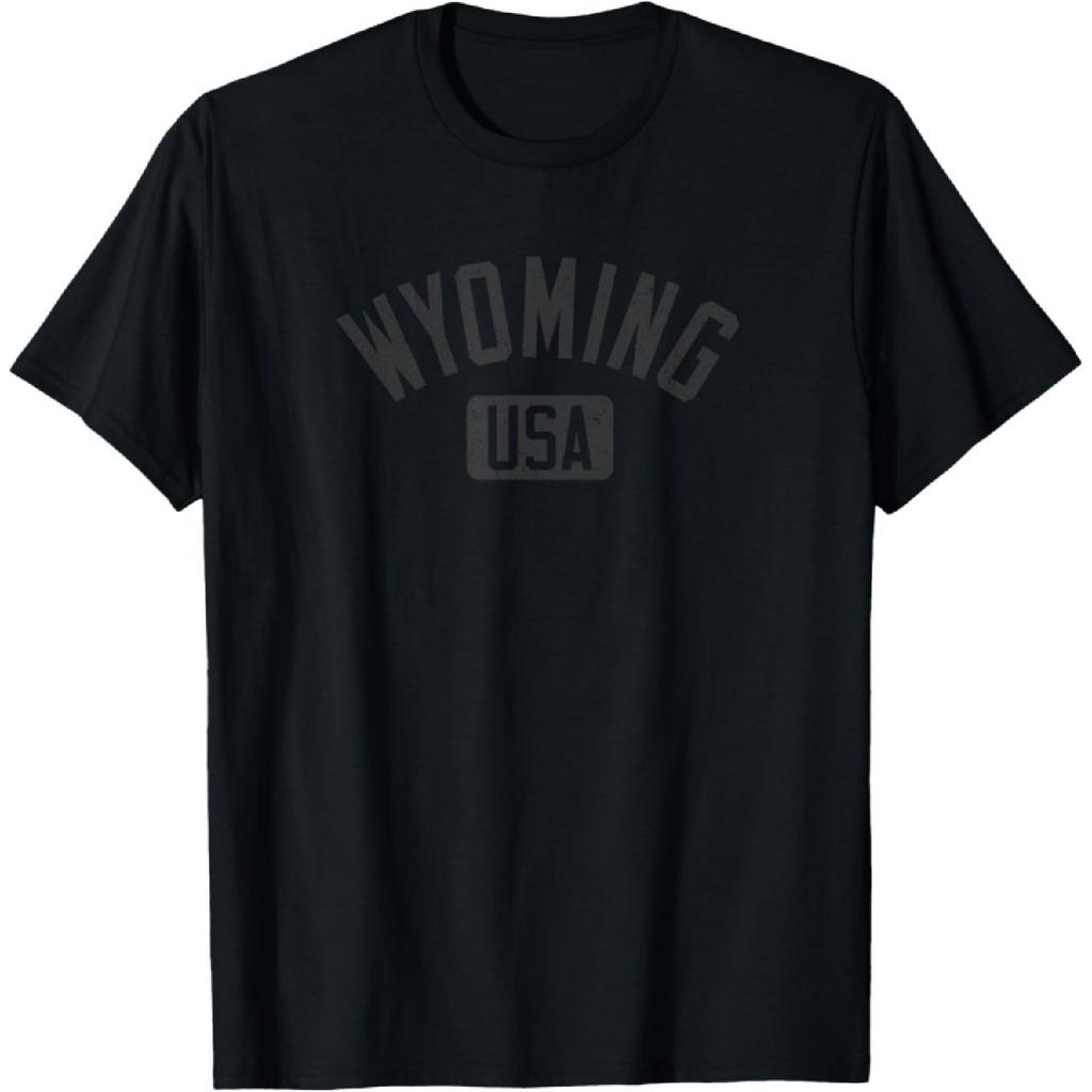 Wyoming USA Arched Text Distressed Black Print T-Shirt