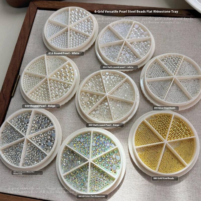 6 Grids Mix Mini Pearl Small Stainless Steel Caviar Beads Nail Art Rhinestones Nail Art Decorations Silver Gold Charm Gel Polish