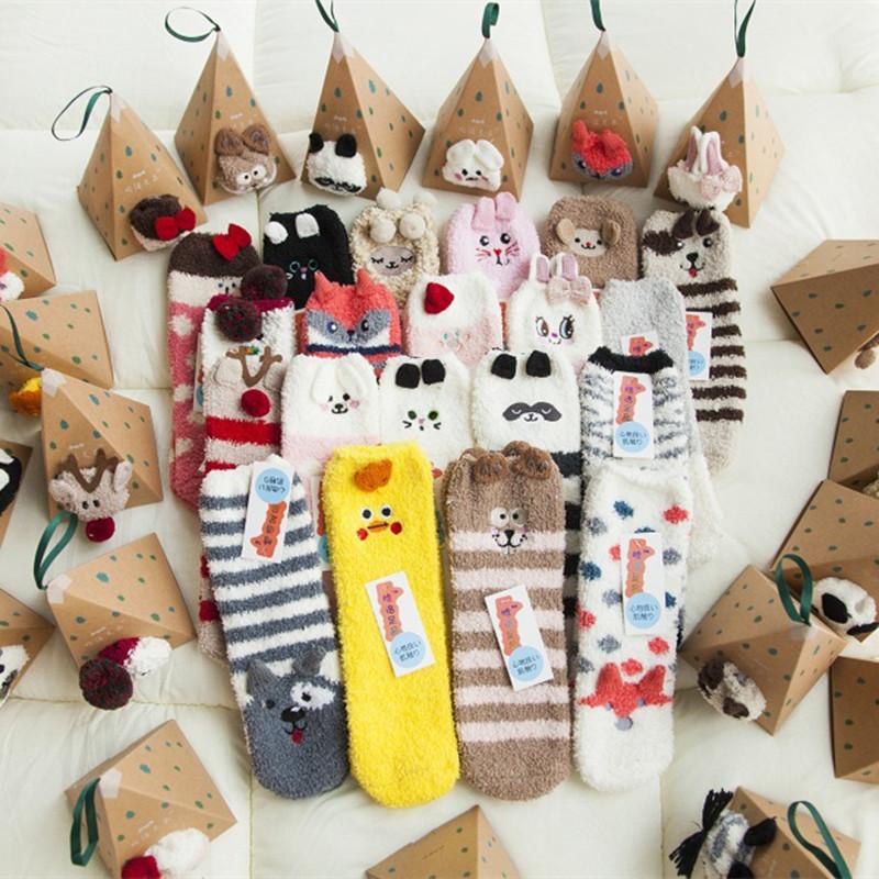 Autumn/Winter Coral Fleece Cartoon Socks - Half Fleece Sleep Women's Socks with 3D Embroidery Christmas Socks