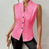 Kadın Modası Düz Renk İş Seyahati Düğmeli Yelek Yelek Üst
