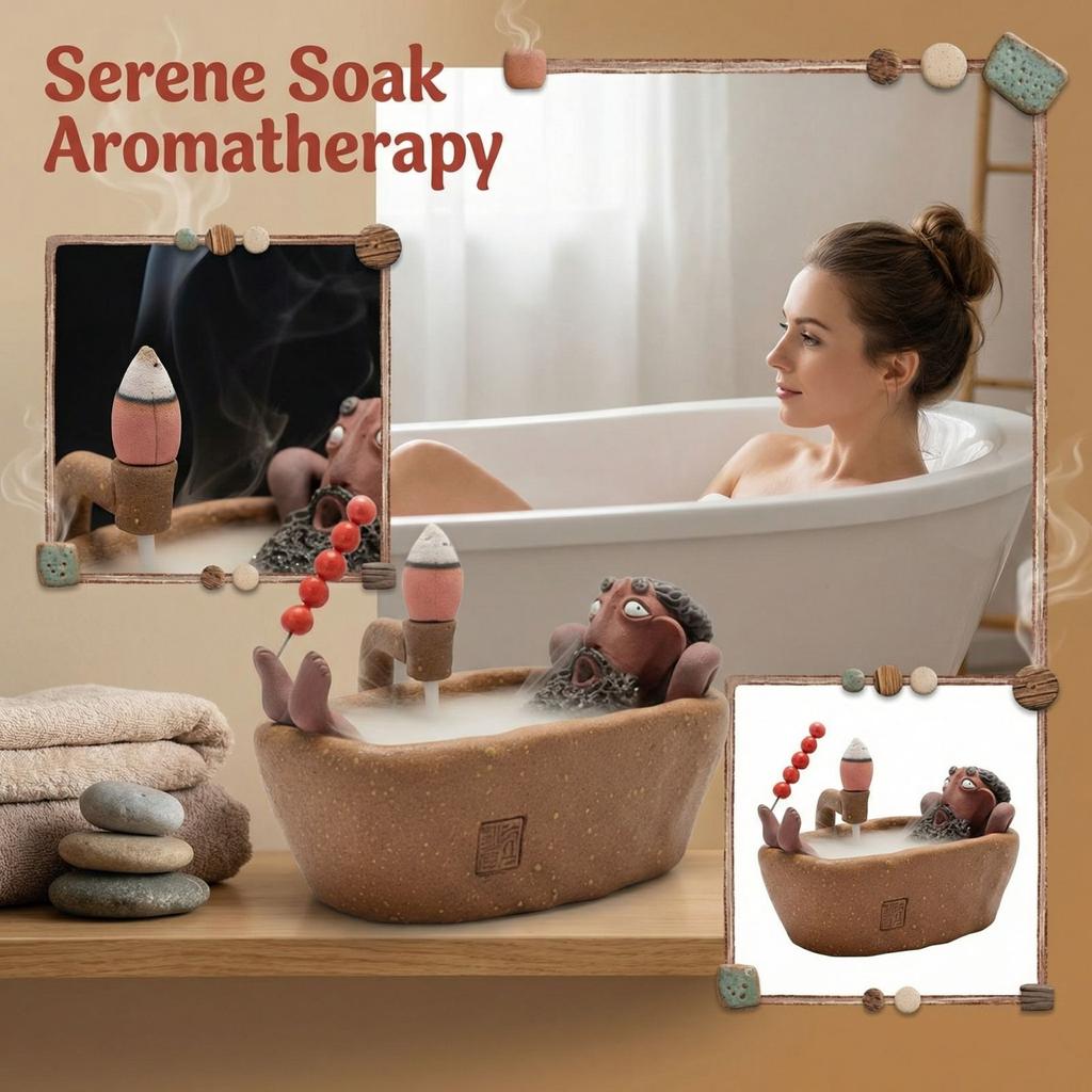 Handmade Bath Guy Ceramic Incense Holder, Hand-Pinched Ceramic Bath Guy Incense Holder, Hand-Pinched Funny Bathtub Figurine, Weird Art Aroma Burner
