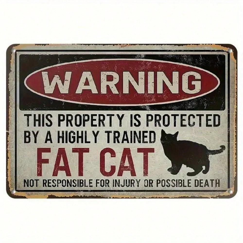 Vintage Metal Cat Sign Funny Wall Art 8x12 Inch Home Security Decor