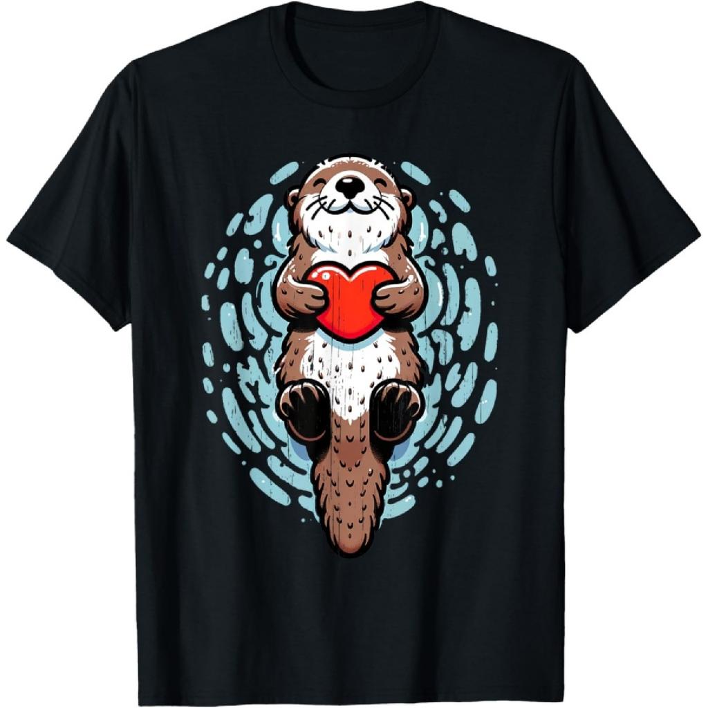 Sea Otter Valentines Heart Lover Funny Boys Men Girls Kids T-Shirt