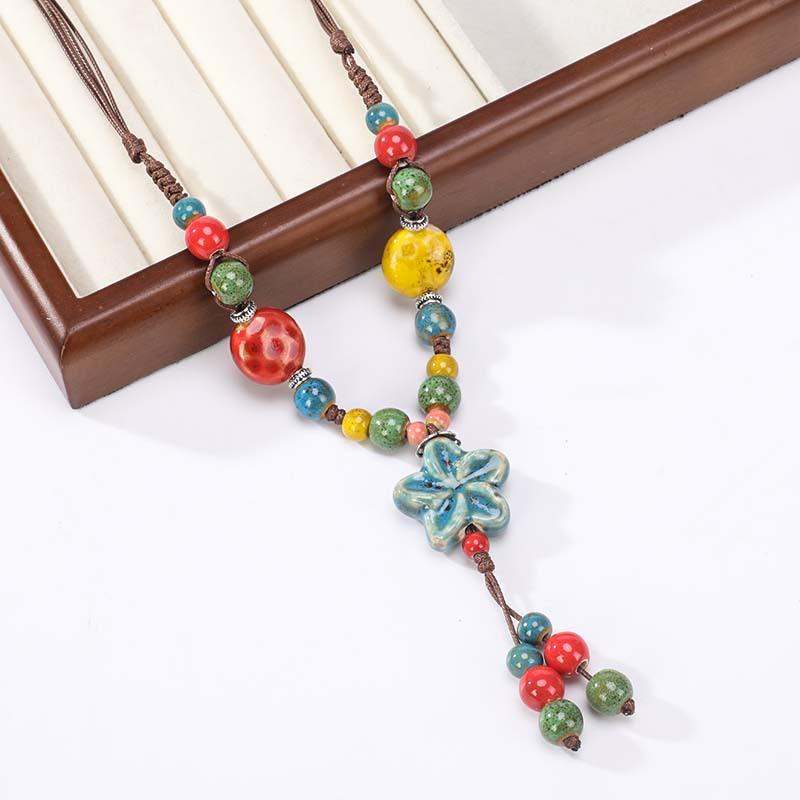 Vintage Ethnic Ceramic Necklace Long Colorful Beads Sweater Chain New Chinese Pendant Versatile Jewelry