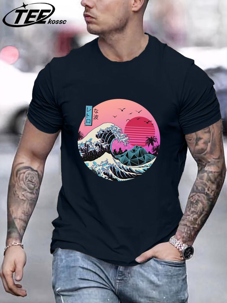 Tsunami And Sunset Are Both Beautiful Man TShirt Loose Cotton Retro Tee Trendy ONeck Short Sleeve Fashion Summer Casual Top