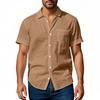 Men's Linen Relaxed Fit Casual Henley Collar Short-Sleeved Shirt