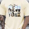 Mens Summer Cotton Fashion Casual Loose New York Pattern Print Sports Round Neck Shortsleeved Tshirt Top Casual Comfortable