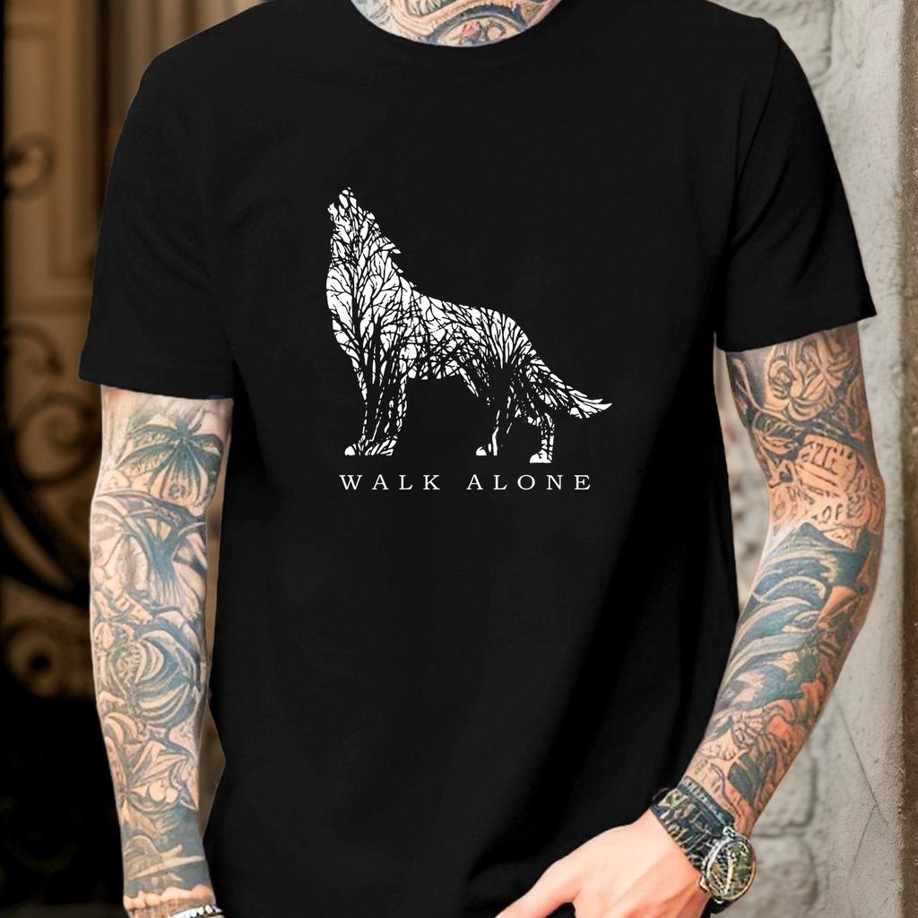 Men Wolf Pattern Cotton Tshirt Casual Round Neck Short Sleeve Solo Design Summer Tee Summer Casual Wear Men Clothing