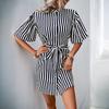 New casual shirt skirt, lotus leaf sleeve stand-up collar striped dress
